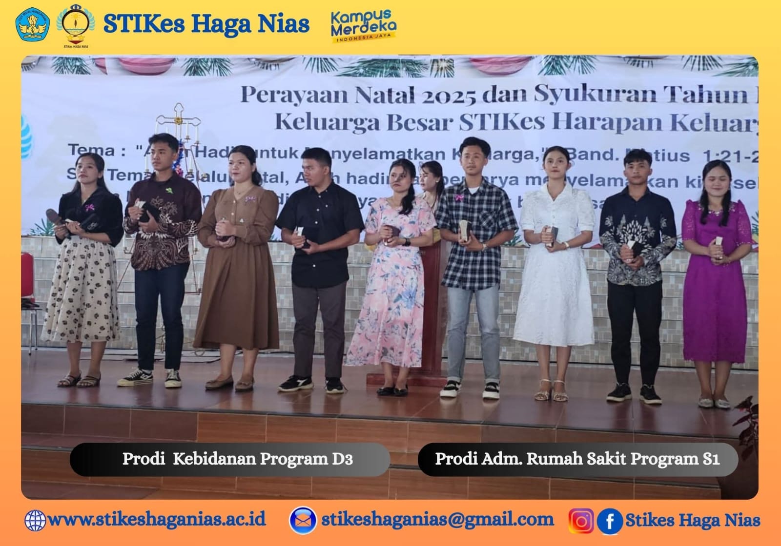 Natal dengan Aksi Nyata: STIKes Haga Nias Berbagi KasihGunungsitoli, (29 Desember 2025). Dalam rangka Perayaan Natal 2025 dan Syukuran Tahun Baru 2026, STIKes Haga Nias melaksanaka...